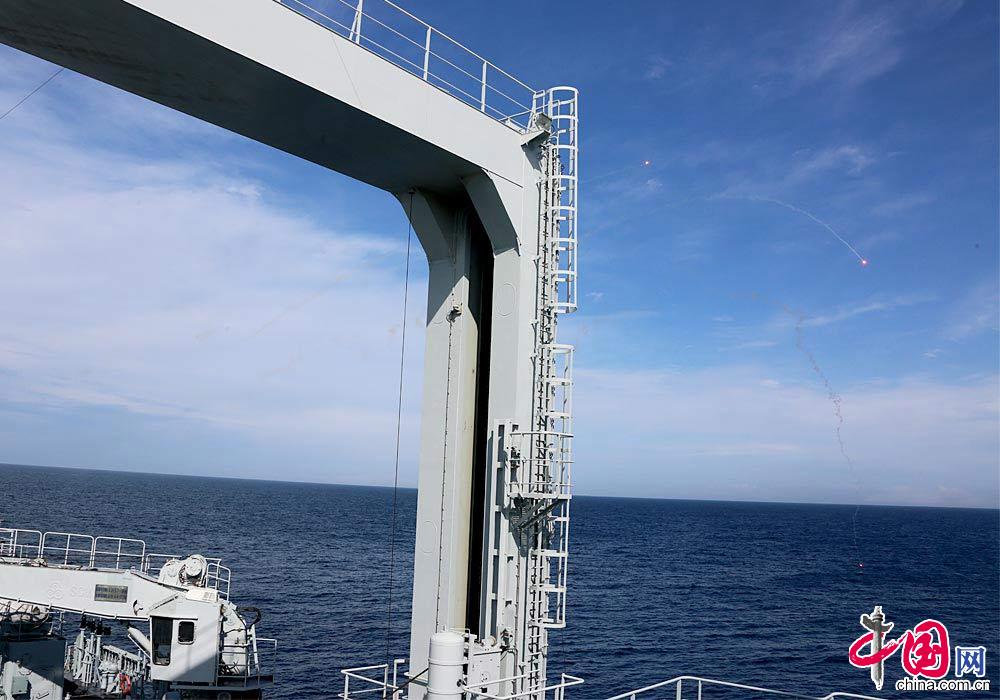 遇险舰船发出信号弹。中国网 鲁楠摄影