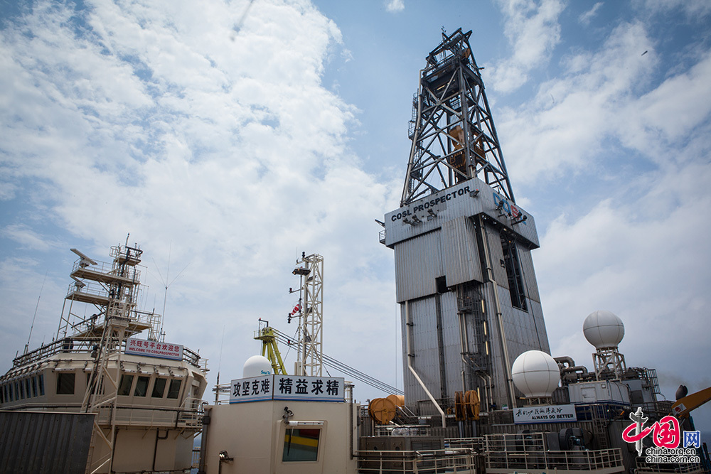 “兴旺号”深水钻井平台正在进行电测作业。中国网记者 伦晓璇 摄