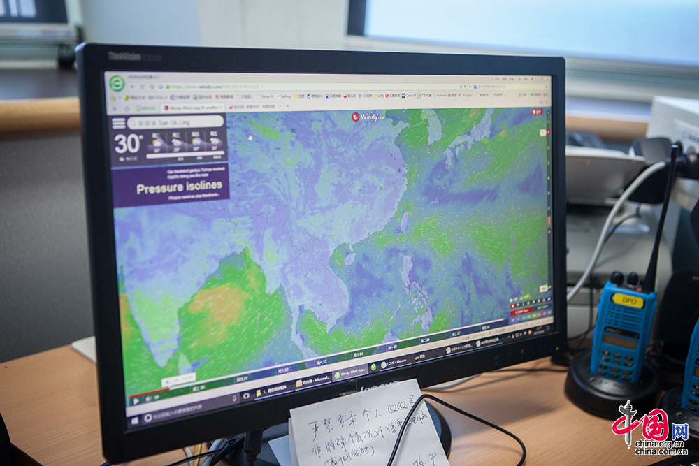 ??? 就在不久之前,台风“泰利”逼近我国东南、华南沿海,接着热带气旋“杜苏芮”紧跟而来。通过对公司提供的台风路径预报及各种气象信息分析汇总,结合现场的作业情况,平台制定了相应的避台方案及应急预案,并在执行中随台风路径变化而调整,台风过后,“兴旺号”及时恢复了生产。凭借近20年在南海区域的避台及海事经验,盖凤喜实时提供有价值的参考信息,科学避台,节约了作业成本。中国网记者 伦晓璇 摄