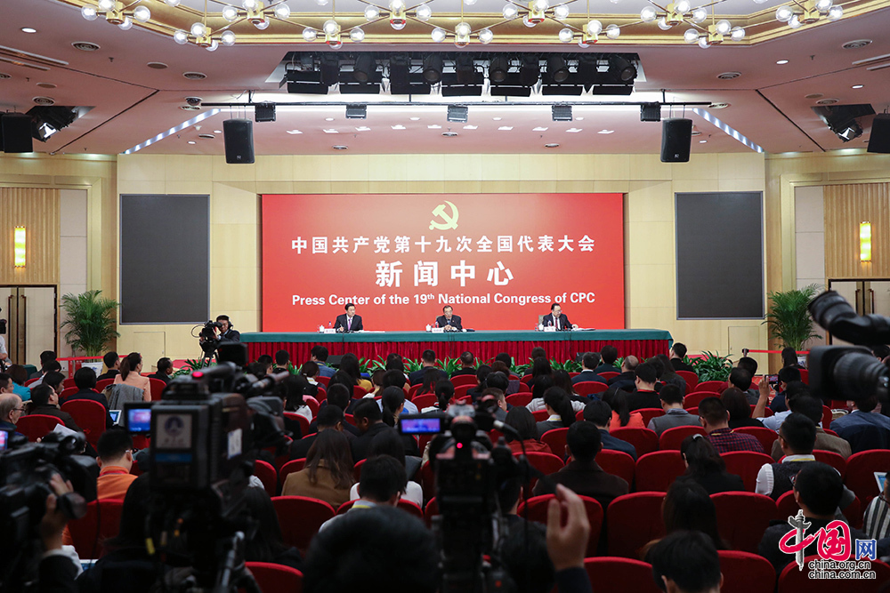10月19日,十九大新闻中心举行记者会,图为现场。中国网记者 董宁 摄