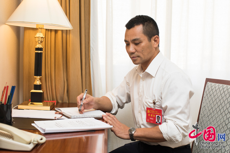 十九大代表钟松民在驻地学习报告。中国网记者 董宁摄影