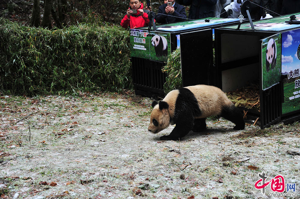 中国网讯 11月23日,由国家林业局和四川省人民政府主办,四川省林业厅、中国大熊猫保护研究中心、雅安市人民政府承办,石棉县人民政府协办的大熊猫“映雪”、“八喜”放归自然活动在四川雅安栗子坪国家级自然保护区举行。这是全球第二次同时放归两只大熊猫。