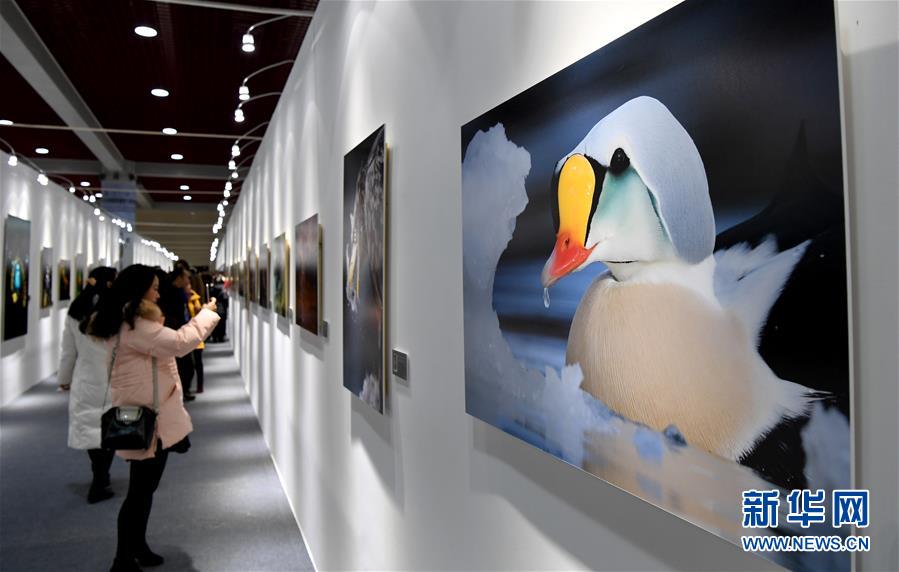 12月12日,观众在参观摄影展。当日,三门峡白天鹅·野生动物国际摄影大展在河南省三门峡市文博中心开幕。共有来自中国、美国、俄罗斯、英国等50多个国家和地区的摄影师拍摄的2700余幅作品参展。新华社记者朱祥摄
