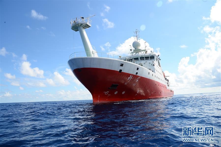 “科学”号在南海执行科考任务(7月27日摄)。 新华社记者 张旭东 摄
