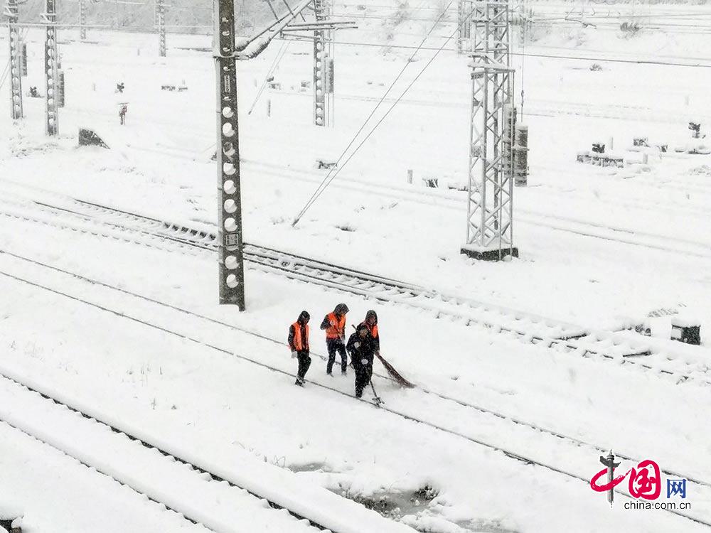 面对此次暴雨雪天气,合肥维管段全体人员毫不畏惧,以雪为令,全段各工区在1月3日夜间连夜冒雪出动,对管辖内关键处所、设备进行雪中重点巡视。段安全、技术、机械、调度等部门加强夜间值班,对工区巡视后发现的情况及时分析反馈。从3日晚间7点截至到4日上午10点,一线人员共出动140余人次,全面覆盖管段内各线路重点区段。