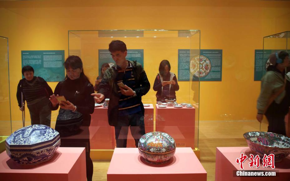 1月5日,观众在香港时代广场参观“香港瓷艺90年——粤东磁厂”展览。粤东磁厂于1928年在香港九龙城设厂,今年将庆祝成立90周年,是香港仅存的传统手绘磁器厂。主办方希望透过今次展览,让各界人士与及海外游客参观香港磁厂的手绘瓷器制品,加深对本土文化与社会发展的认识及了解,并期盼这具香港特色的彩瓷可以继续发展,广彩手艺得以保育承传。中新社记者 洪少葵 摄
