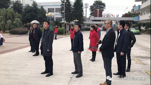 中华少年儿童慈善救助基金会圆梦专项基金管委会主任冯昌栋与县教育局局长邓昌海等共同走进校园