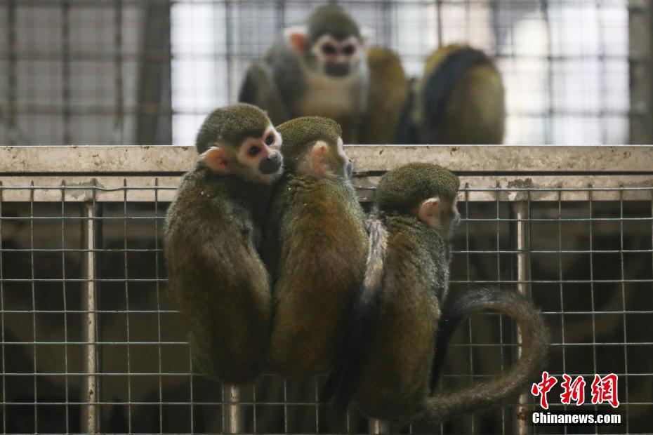1月12日,贵阳动物园灵长馆内,松鼠猴在取暖设备旁取暖。入冬以来,贵阳市黔灵山动物园根据各类动物的生活习性采取了保暖措施,帮助动物顺利过冬。中新社记者 贺俊怡 摄