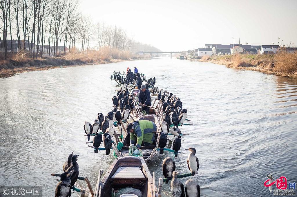早上江苏省兴化市袁家庄村的气温只有零下5度。穿过弯曲的弄堂,八条窄窄的渔船停在了村子里的水道上。在船舷的两侧的架子上,180只灰黑色的鸬鹚已经排好队,像一群整装待发的战士。鸬鹚捕鱼,一门传承了上千年的古老技艺,在南方水乡正面临失传的危机。“不能让它在我这一代断了,如果可以,我会一直做下去,没有期限。”王海说,他已经在互联网上找到了既能传承技艺,又能创业养家的方法。图片作者:牛镜/视觉中国
