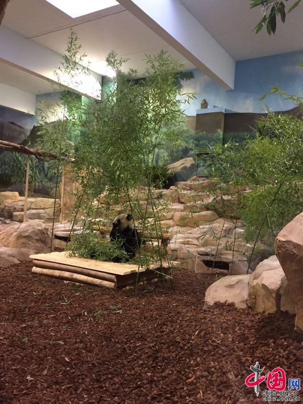2018年1月13日,首只在法国出生的大熊猫“圆梦”迎来了首个公众见面日。据成都大熊猫繁育研究基地饲养员段东琼介绍,“圆梦”和“欢欢”目前都非常健康,精神状态和采食情况都不错。 图片由成都大熊猫繁育研究基地提供