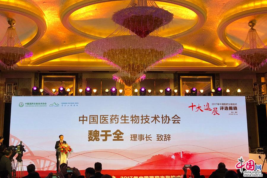 中国网讯 1月13日,“2017年中国医药生物技术十大进展评选”揭晓活动在浙江桐庐举办。本次活动由中国医药生物技术协会和《中国医药生物技术》杂志共同主办,桐庐县人民政府承办,桐庐富春山健康城管委会、浙江金时代生物科技有限公司、杭州爱唯生命科技有限公司协办,中国医药生物技术协会理事长魏于全院士、中共桐庐县委书记朱华分别代表主办单位和承办单位致辞。