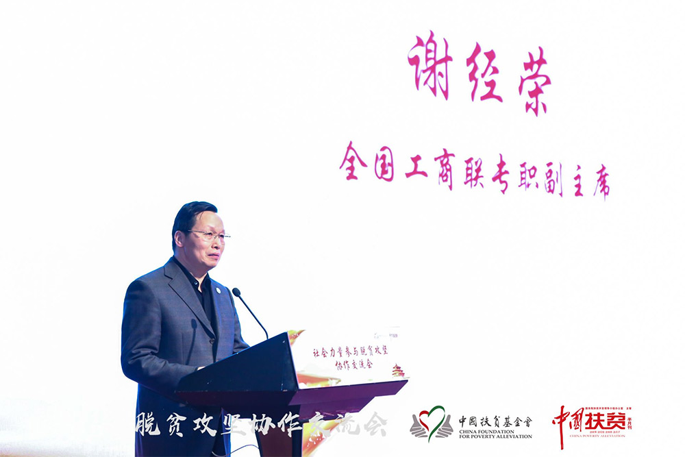 1月15日,由中国扶贫基金会、《中国扶贫》杂志社主办的“社会力量参与脱贫攻坚协作交流会”在京举行,来自国家机关、央企、民企、外企、行业协会、地方政府代表以及媒体界近500人参会。全国工商联专职副主席谢经荣、国务院扶贫办副主任洪天云、国务院国资委综合局巡视员刘源、中国扶贫基金会理事长郑文凯等领导出席并致辞。