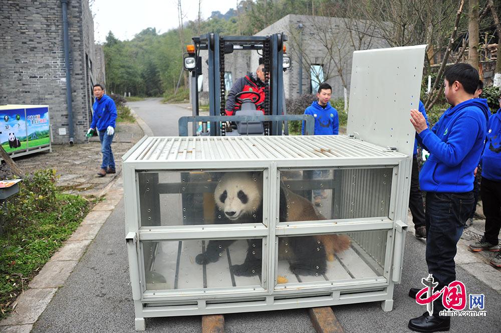中国大熊猫保护研究中心大熊猫“华豹”“金宝宝”都江堰启程前往芬兰
