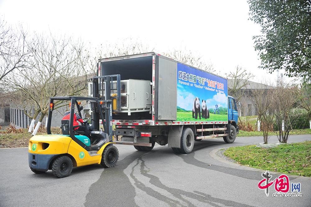 中国大熊猫保护研究中心大熊猫“华豹”“金宝宝”都江堰启程前往芬兰