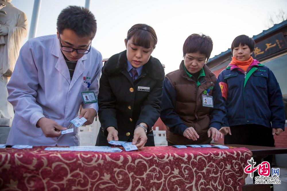 2018年1月19日,北京西站售票车间职工与团体购票企业代表共同检查清点车票。中国网记者 郑亮摄