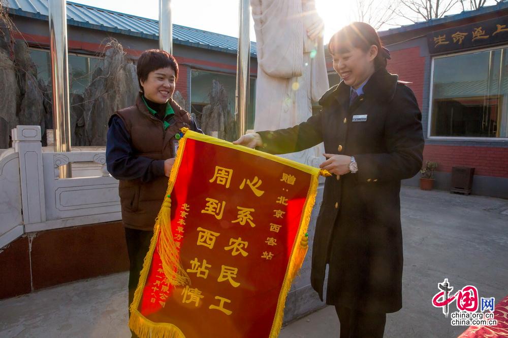 团体购票企业代表为北京西站售票车间颁发锦旗表示感谢。中国网记者 郑亮摄