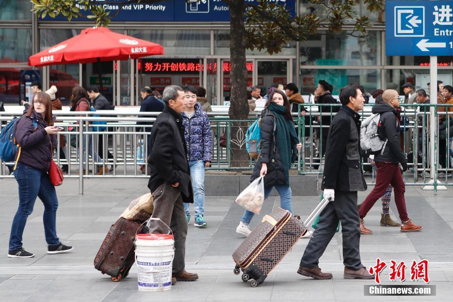 游客拖着行李进入铁路上海站。 殷立勤 摄