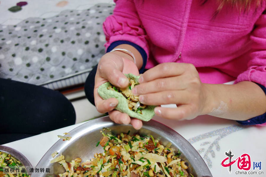 2015年2月27日,江西省遂川县市民在做客家特色小吃——艾叶米果。中国网图片库 肖远泮摄影