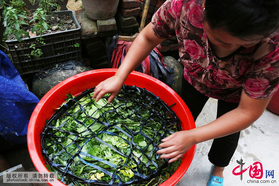 “侗布”就是用织好的布经蓝靛、白酒、牛皮汁、鸡蛋清等混合成的染液反覆浸染、蒸晒、槌打而成。由于其制作工艺复杂,"侗布"非常珍贵,侗族人民除了自己用外,还作为赠送客人的最佳礼品。 中国网图片库 杨文斌 摄