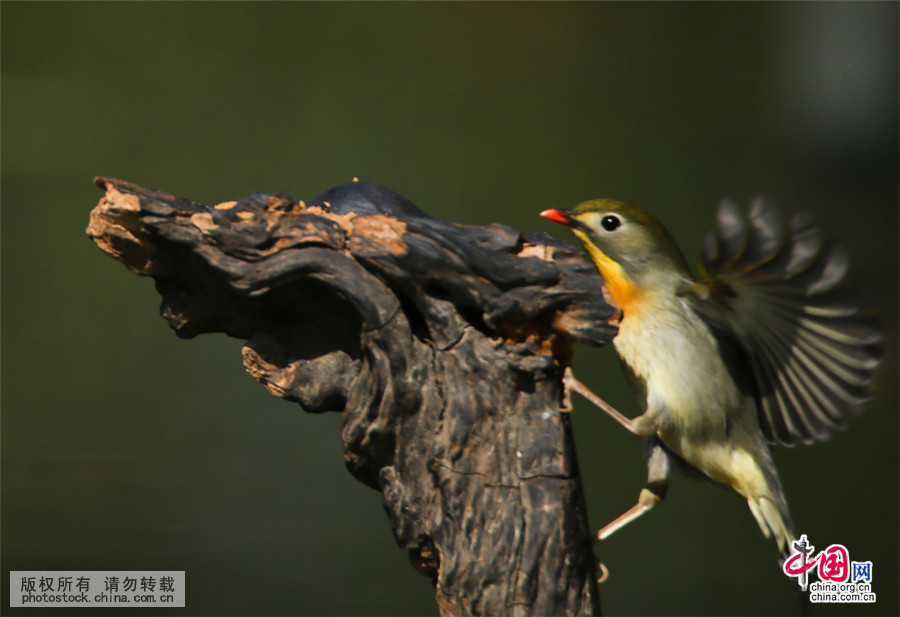 2月29日,贵阳气温回升,各地开始花红柳绿,春回大地,万象更新。在贵阳黔灵公园的相思鸟儿,在春天阳光寻食,让人们感觉到春意扑面,生机盎然的景象。中国网图片库作者:张晖