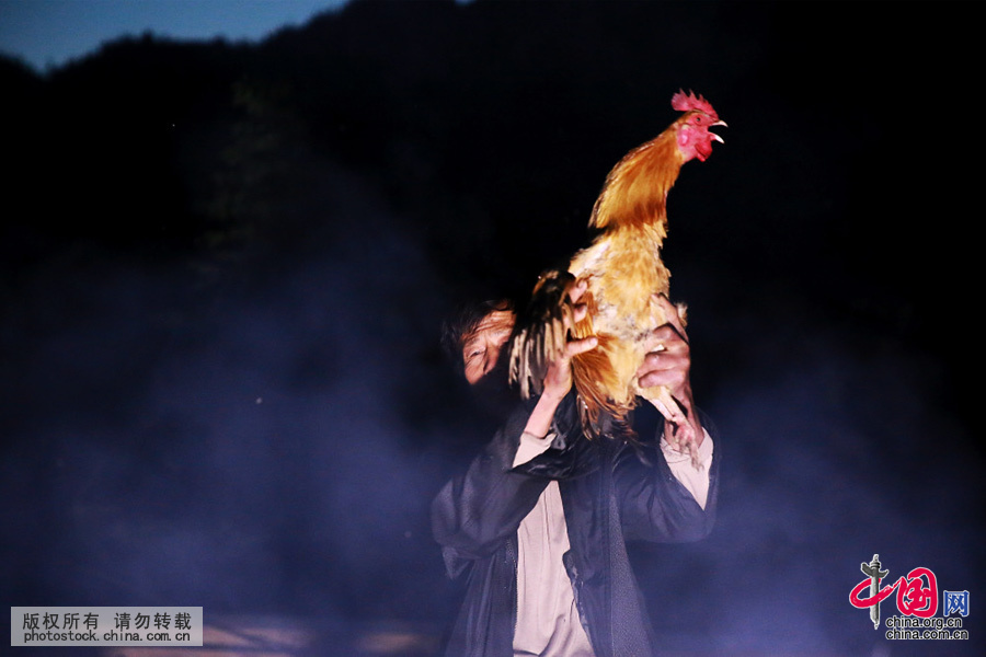 瑶族村民杀鸡祀请鲁班。 曾勇 摄