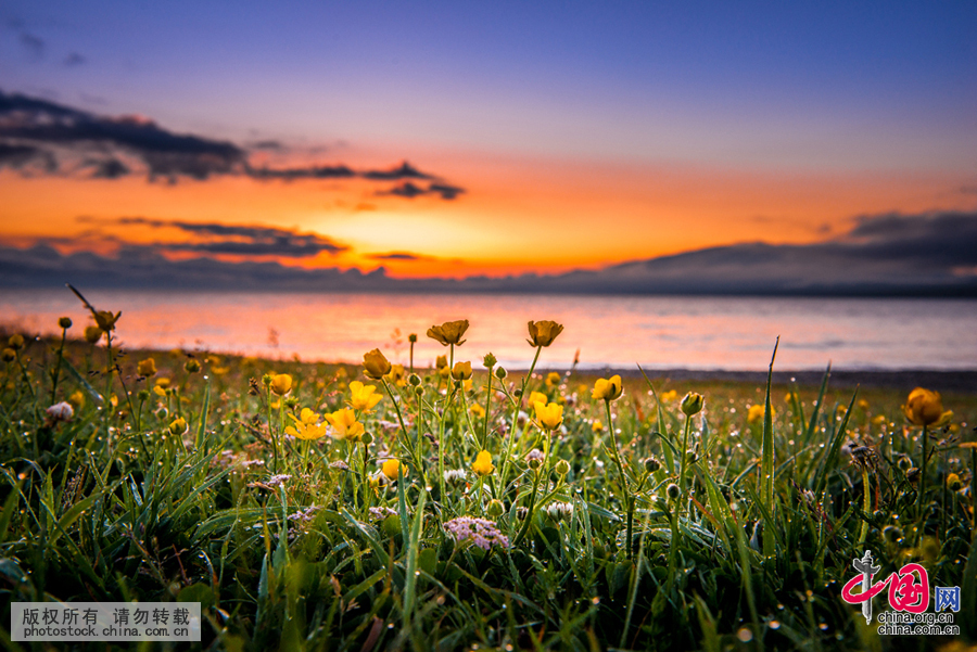 春季时湖边芳草依依,点缀着圣洁的高山大湖。 祁军 摄