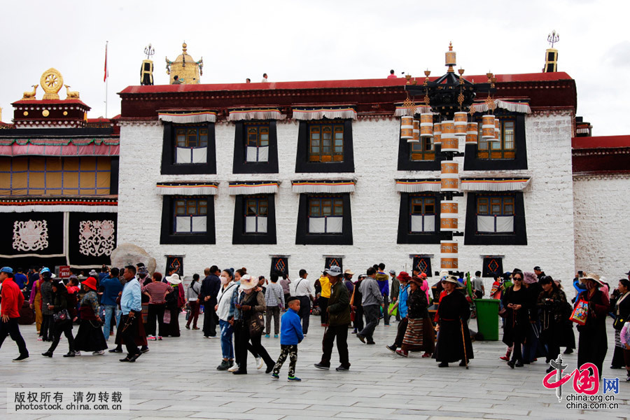 朝圣者遍布了藏族特色街道。韩加君 摄