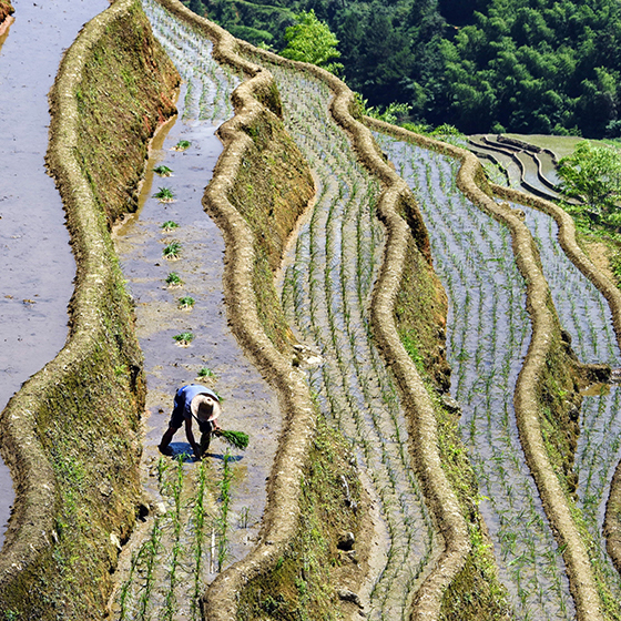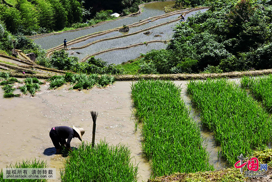 农民背朝艳阳面朝土。 肖远泮 摄