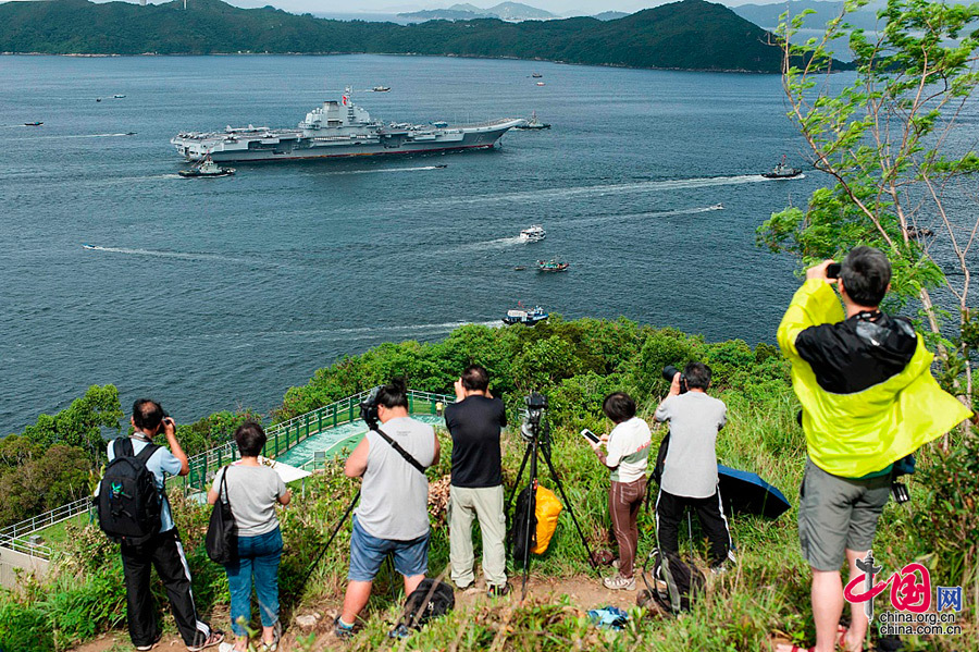 2017年7月7日上午,海军辽宁舰航母编队结束跨区机动训练任务抵达香港,参加解放军进驻香港20周年庆祝活动。